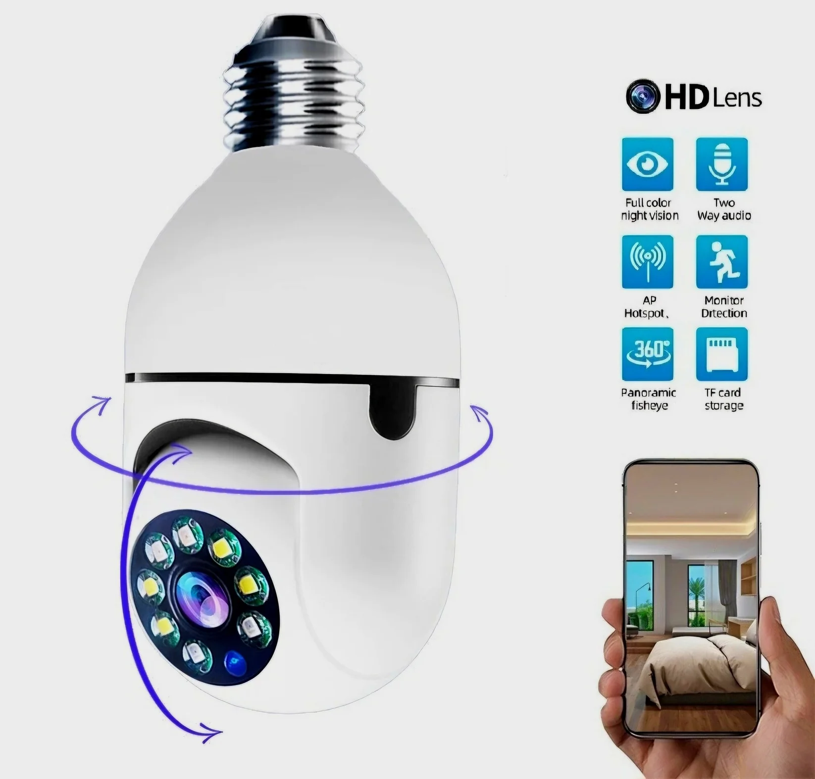 Povećajte sigurnost svog doma s našom Pametnom WiFi Kamerom u Obliku Žarulje. Ova inovativna kamera kombinira diskretan dizajn s naprednim funkcijama za praćenje i sigurnost, omogućavajući vam da nadzirete svoj dom s bilo koje lokacije.
